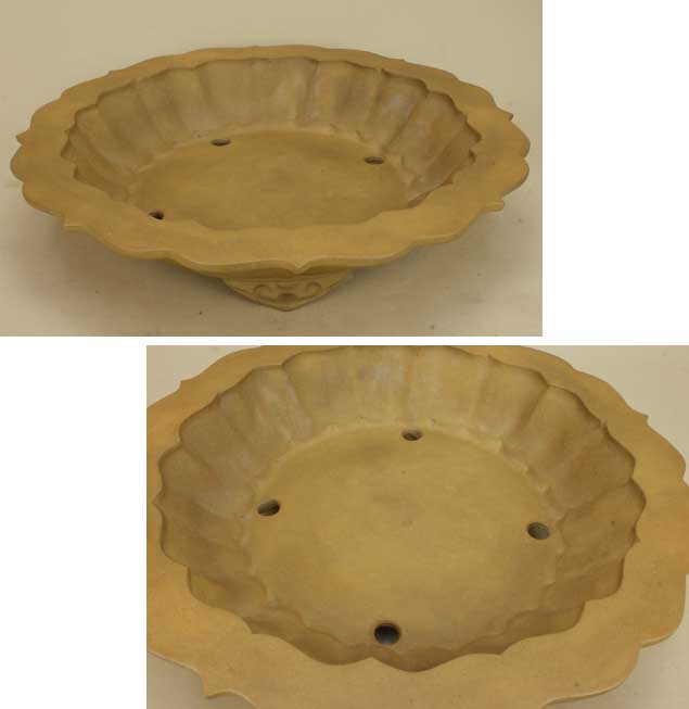 送料無料【盆栽鉢】 時代鉢 萬留平 敬深作桃花泥 古鏡型鉢(無傷)【大型サイズ】【外径:46cm 高:9cm】