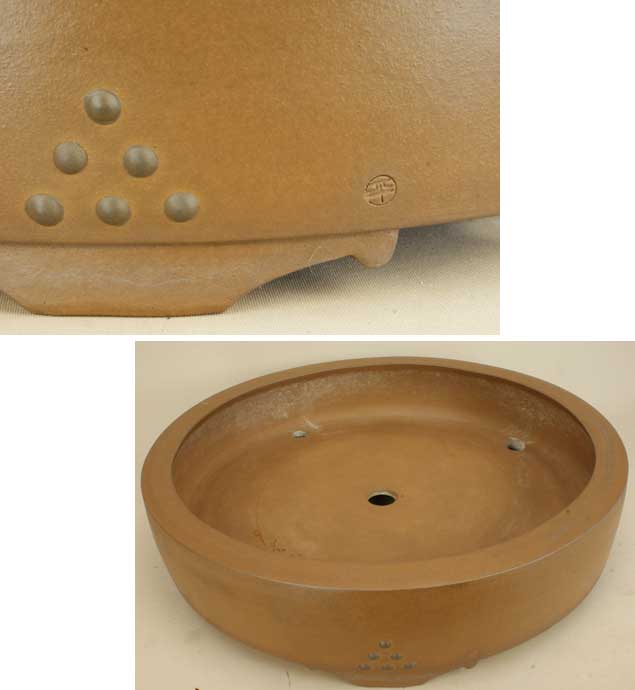 【盆栽鉢】時代鉢 萬留平 敬深作 桃花泥 鋲打 丸鉢(無傷)(大型サイズ) ご自分用にはもちろん、誕生日、父の日、母の日、敬老の日、等々 大切な方へのプレゼントやギフトにもおすすめです。