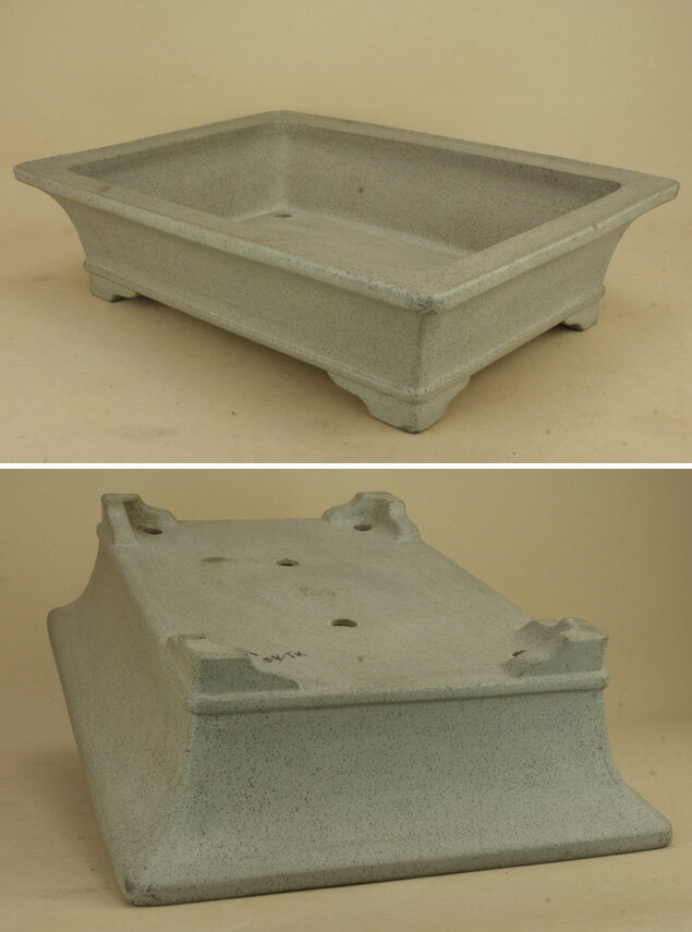【盆栽鉢】 時代鉢 誠山作 下紐外縁長方鉢 (無傷)(大型サイズ 左右:42.5cm) 日本における盆栽の小型化と経済の低迷により、盆栽鉢の生産が激減する中、昭和の時代に生産された日本鉢のすばらしさが見直され、海外からの需要が急激に高まっています。