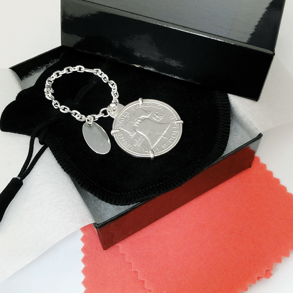 実際に米国で流通していた、本物のハーフダラーの“生まれた年の銀貨”でハンドメイドするキーリング。